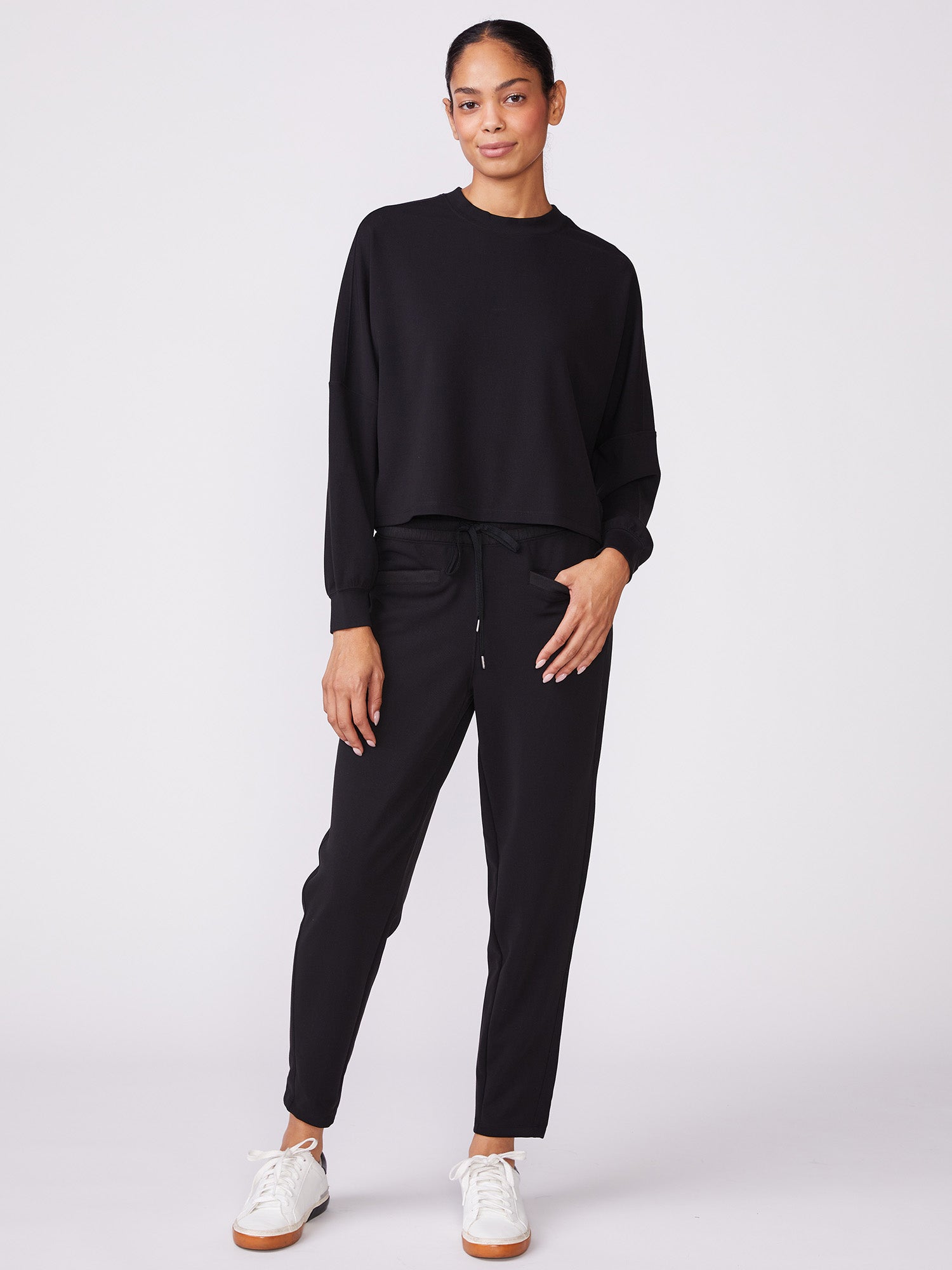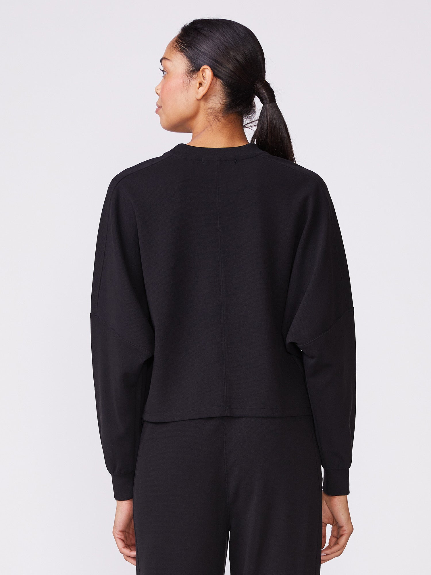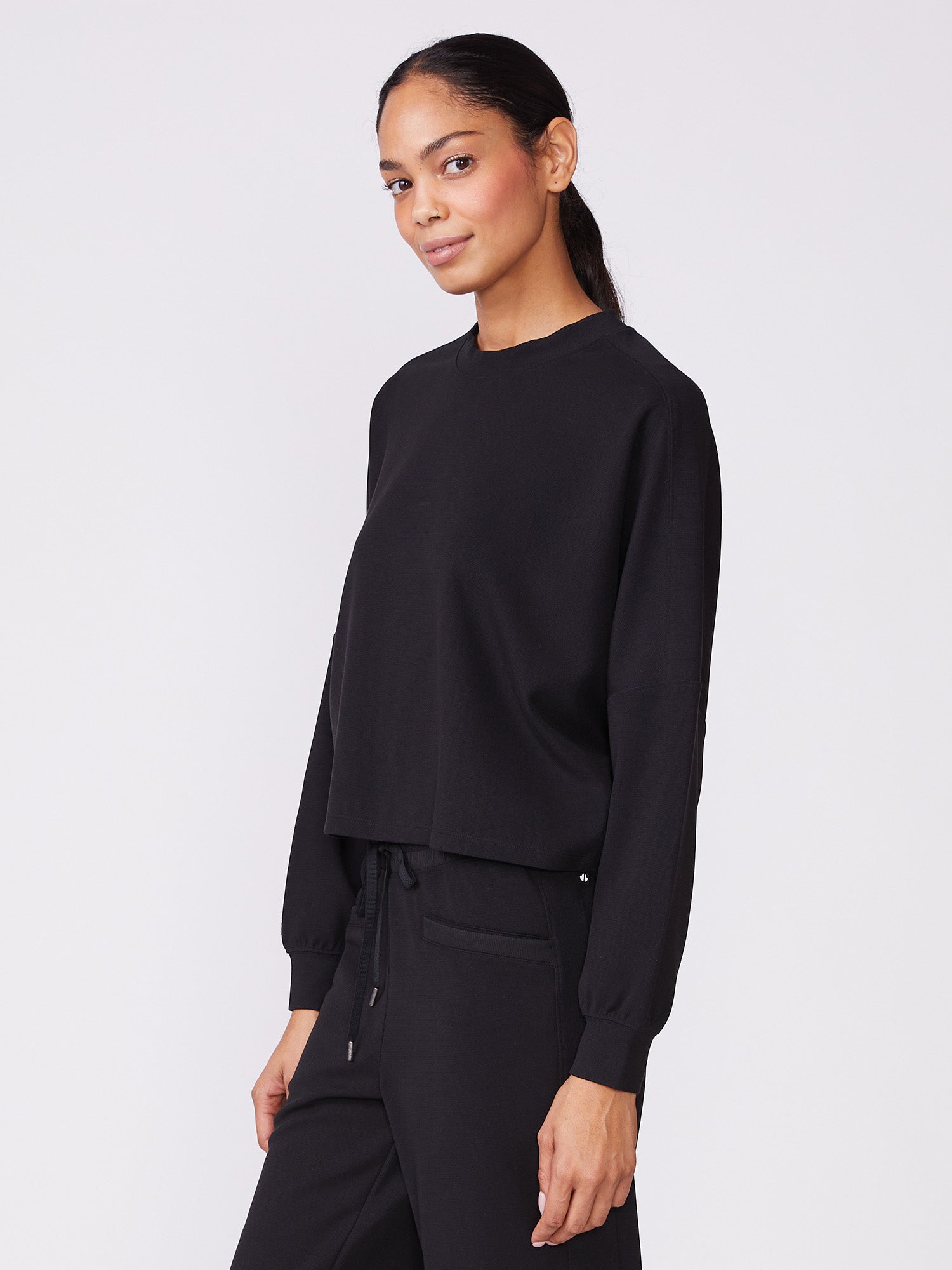 This Long Sleeve Dolman Knit Top features a relaxed fit and crew neckline. Pairs effortlessly with the matching Luxe Waffle Mix Taper Pant for a comfy and cozy looking for indoors and out.