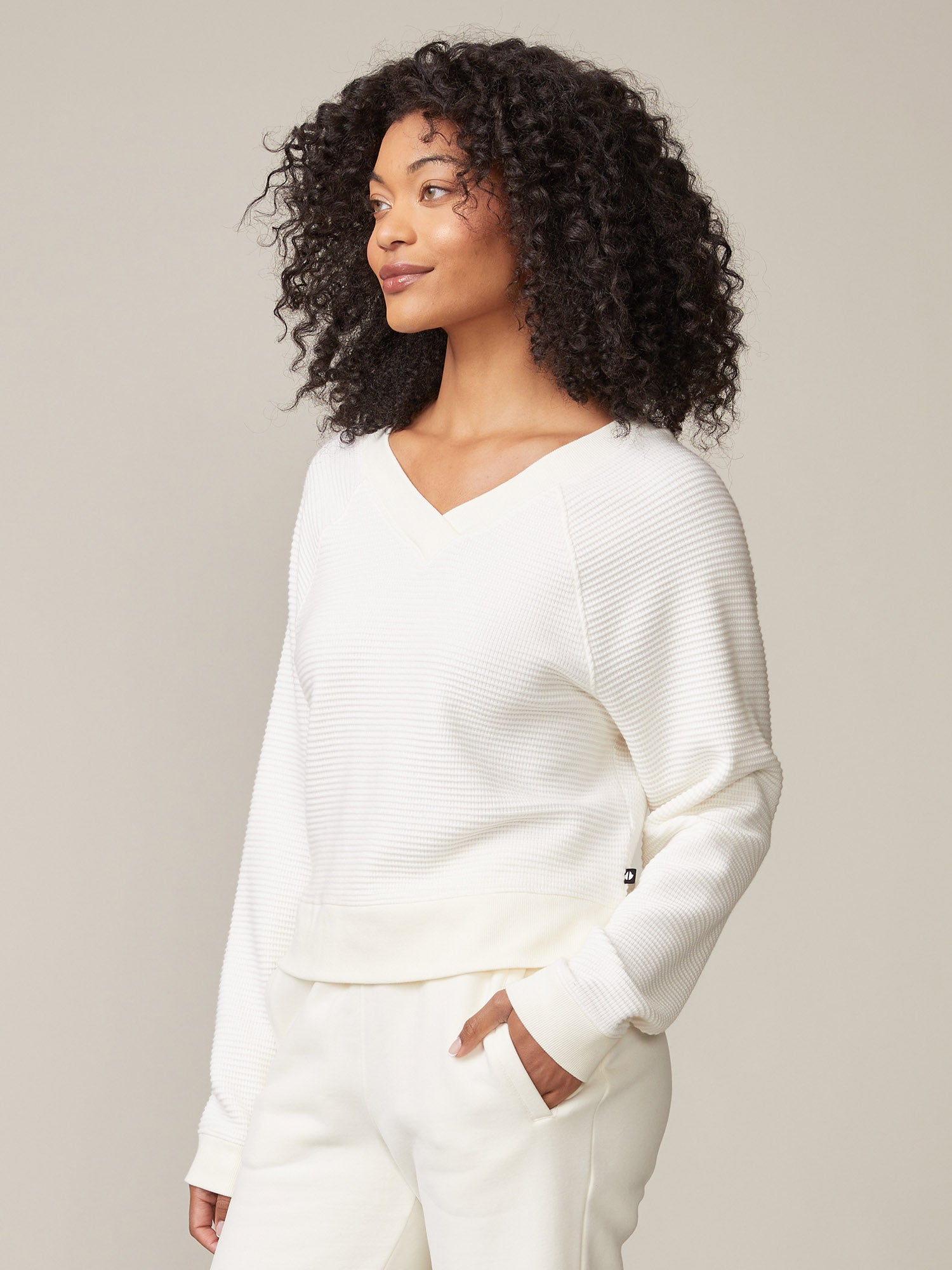 This cozy pullover is made in a soft, textured waffle knit with a relaxed fit and features flattering V-neckline at both front and back. Perfect for layering or wearing on its own, our Double V-Neck Waffle Pullover is a piece you'll want to live during snuggle season.