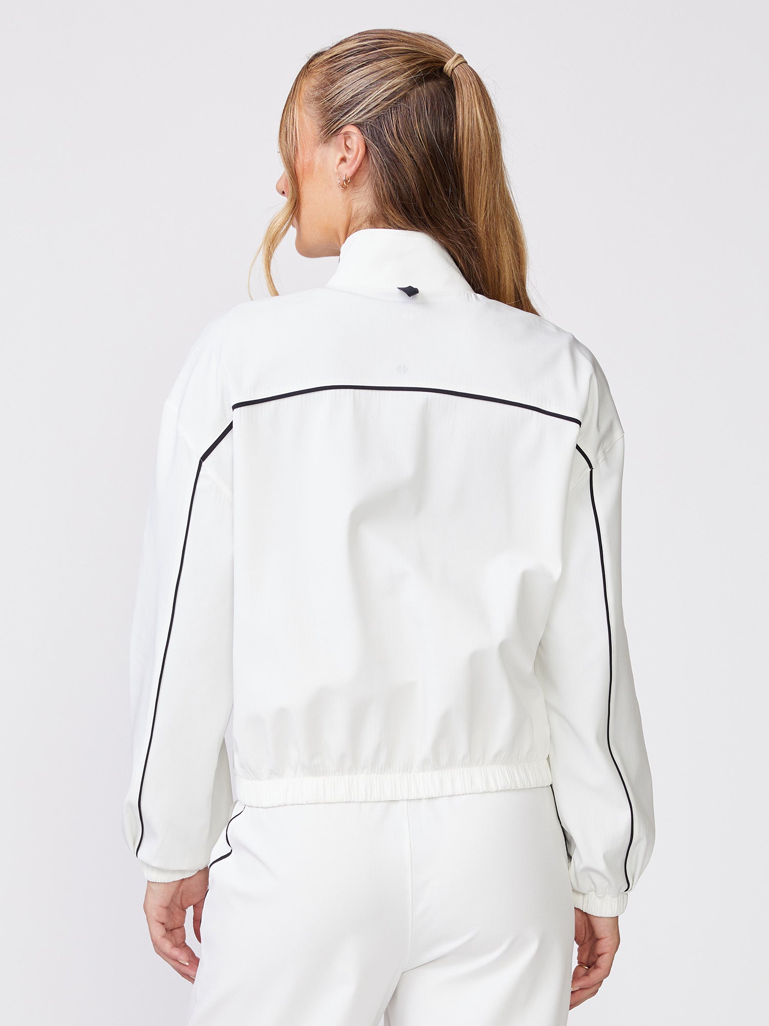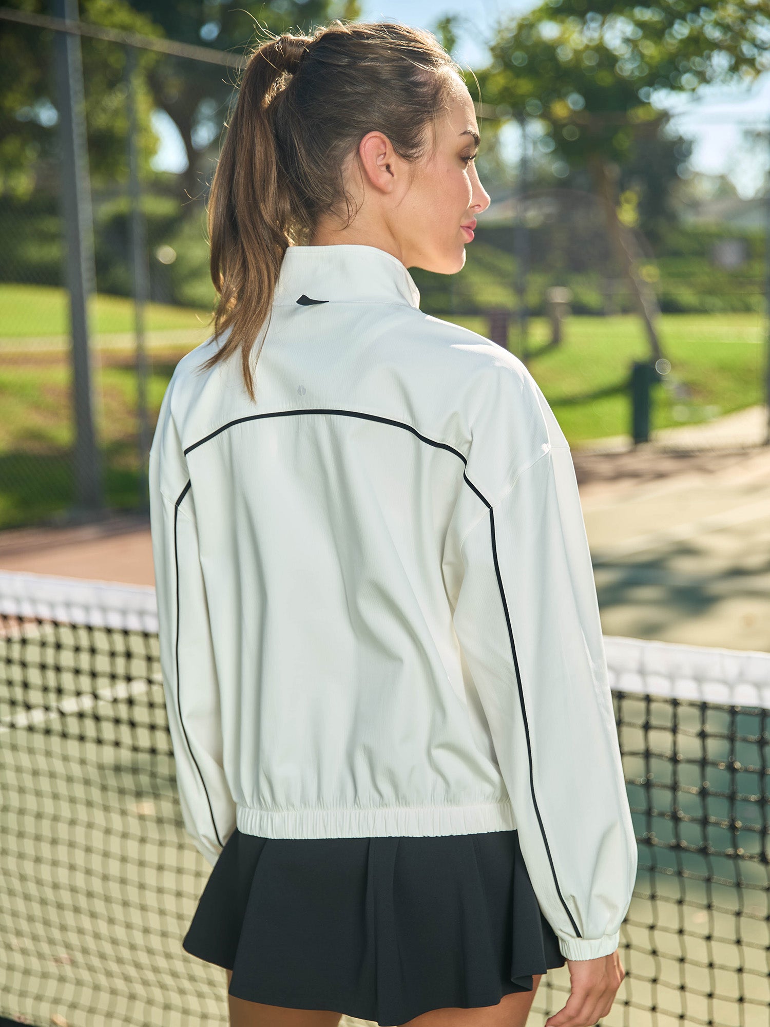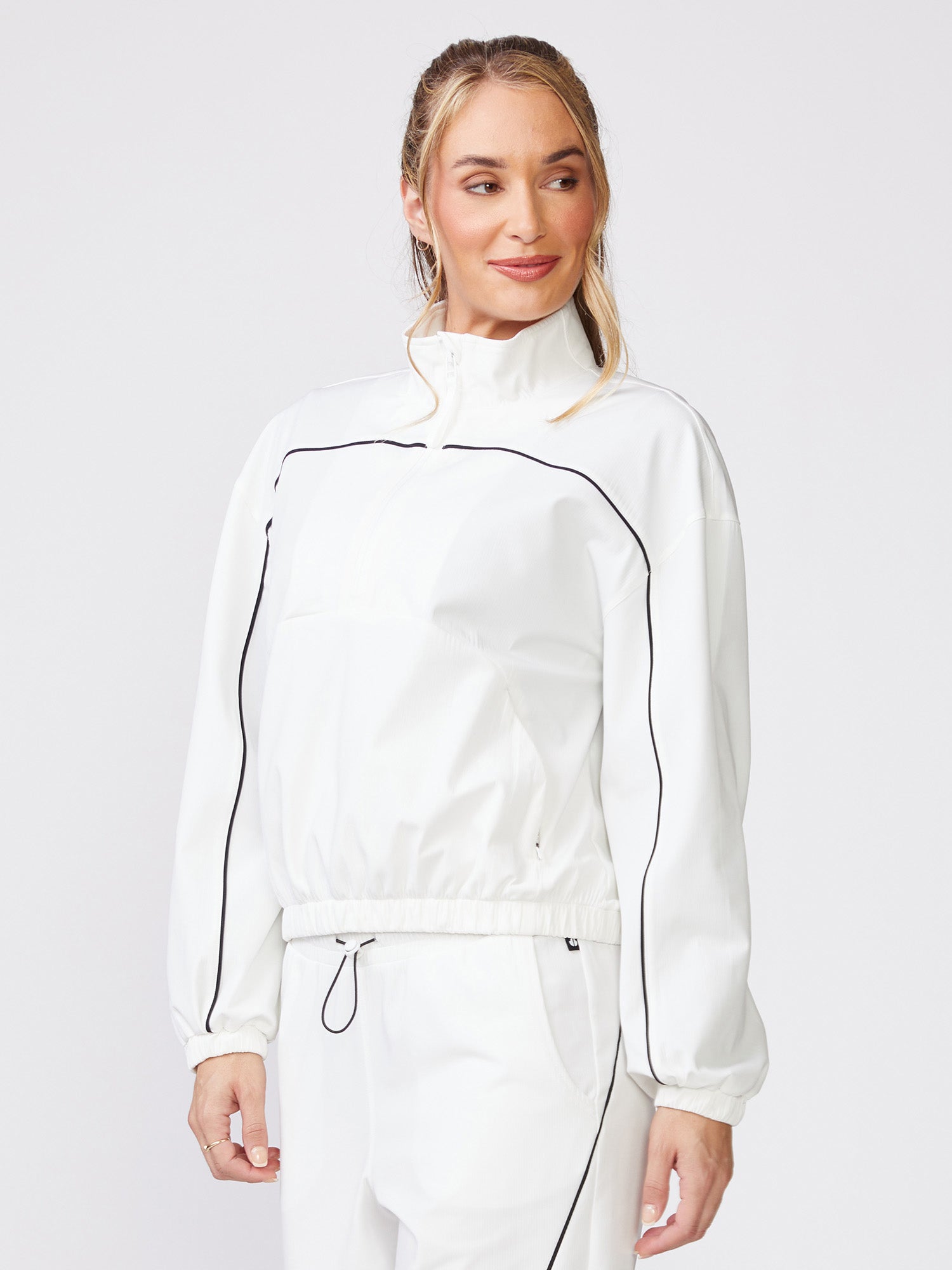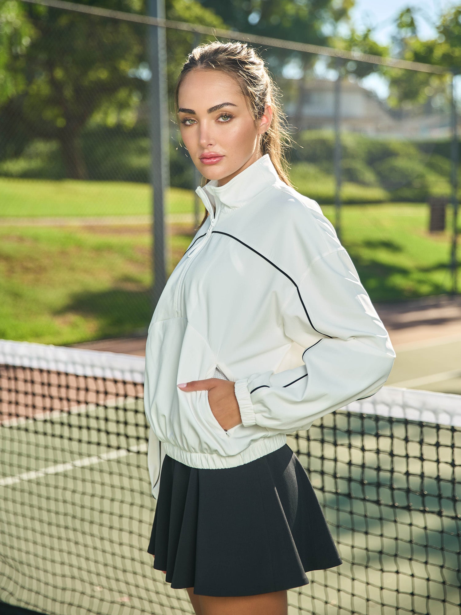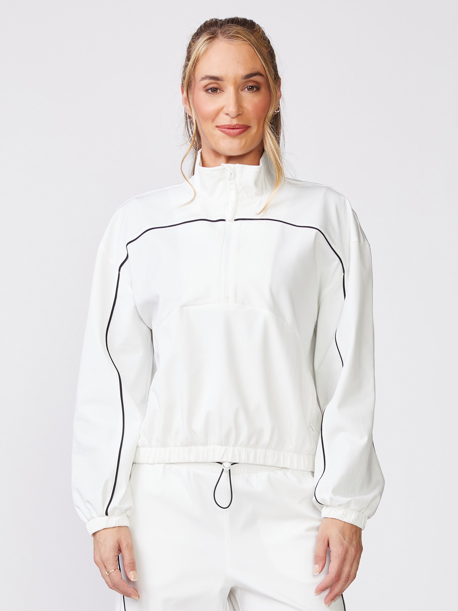 Our Long Sleeve Performance 1/4 Zip is made in our Pin Stripe Commuter fabric, loose fit, and the perfect casual piece for a day on the courts or a day out. Contrast piping completes the look.