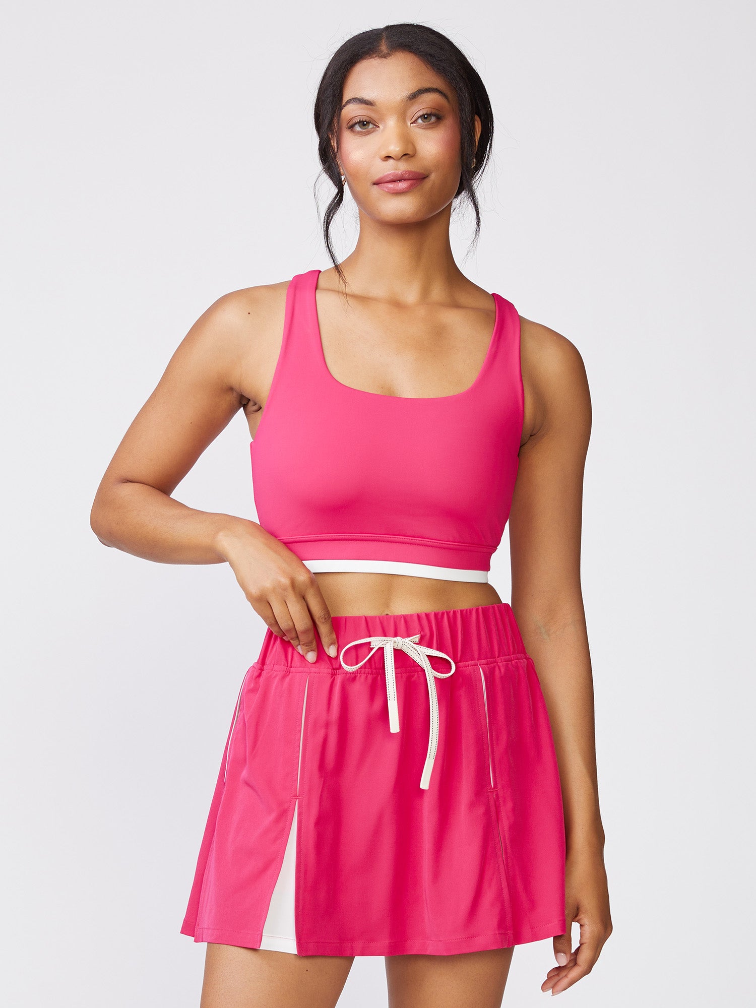 The Pop Color Pleated Skort is made in our Fleet fabric featuring 4-way stretch, moisture wicking, breathable, and quick drying properties. This skort pairs effortlessly with our Open Back Tennis Bra for a perfect fit on the courts and off.