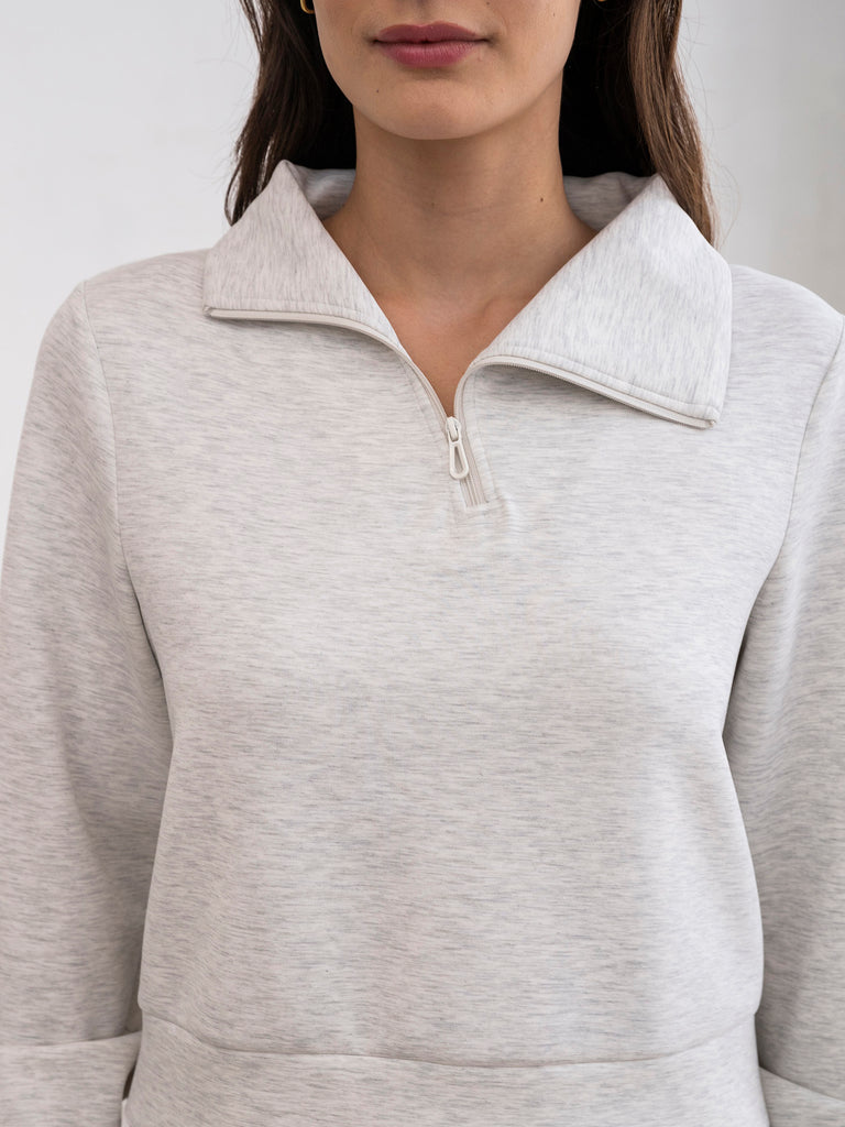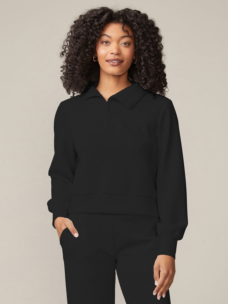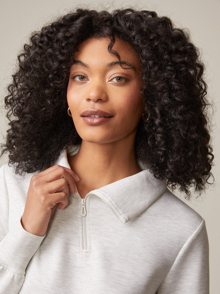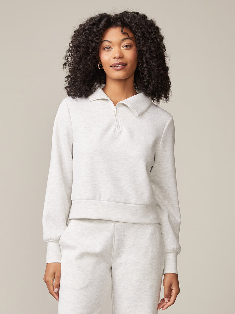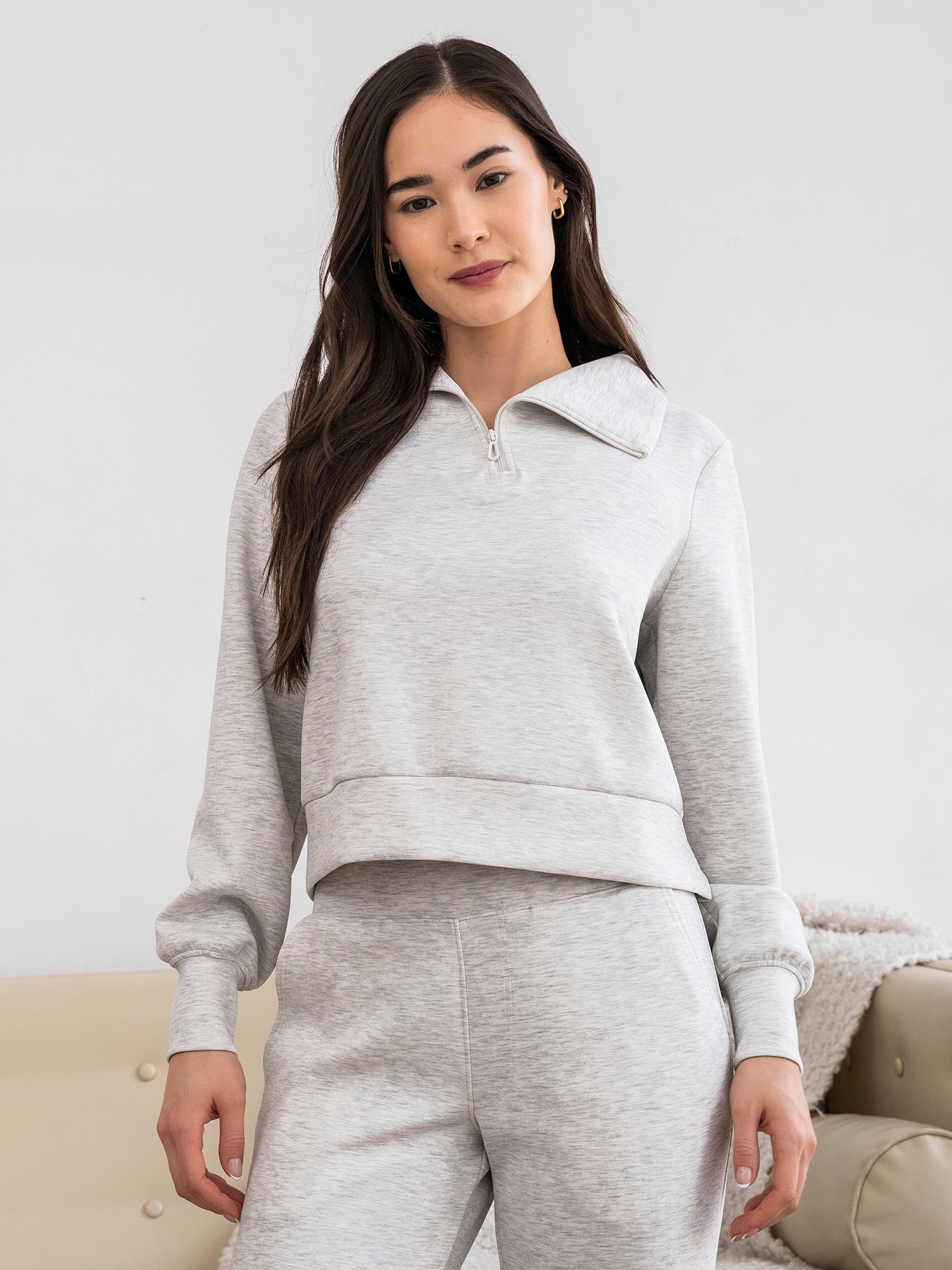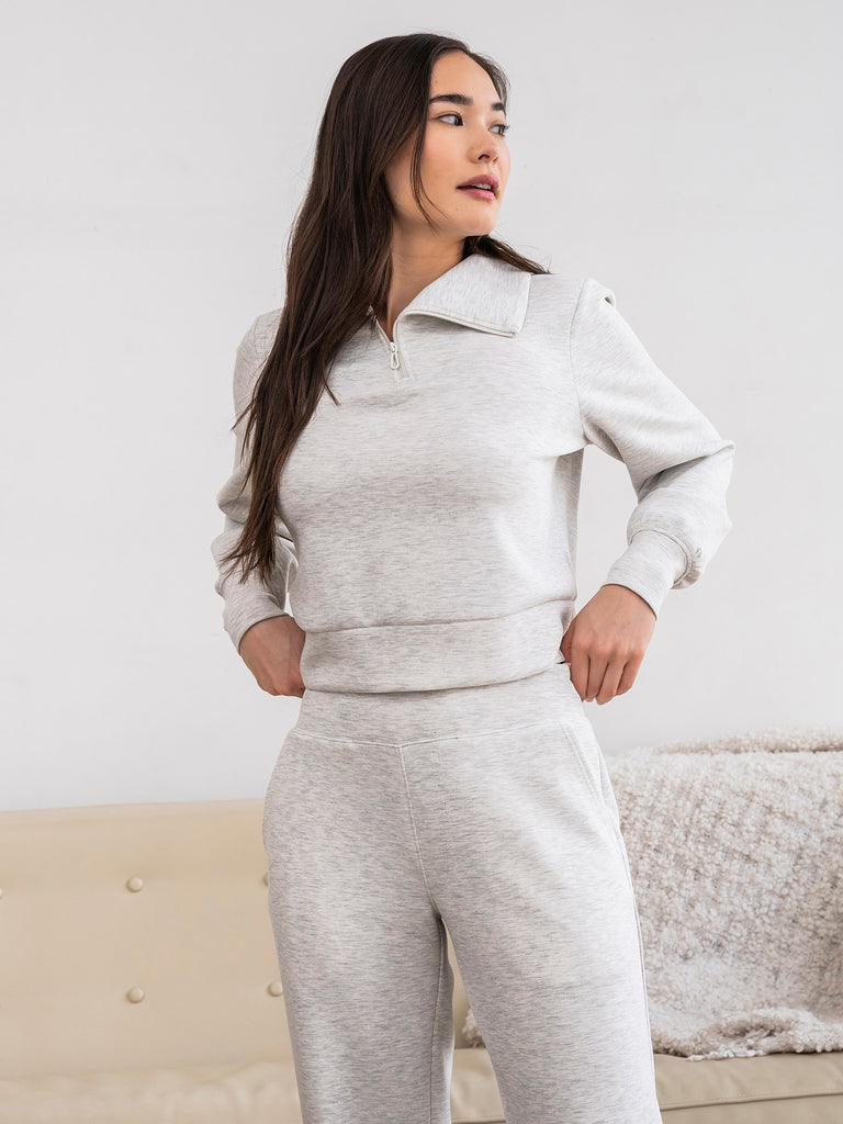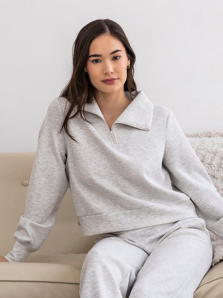 The Ultraluxe Asymmetric Zip Pullover features a relaxed silhouette and an asymmetric 1/4 zippered front. Made in our smooth sand washed Ultraluxe fabric, this pullover airs perfectly with our Ultraluxe Cropped Lounge Pant for a coordinated and polished look for indoor lounging or stepping out in style.