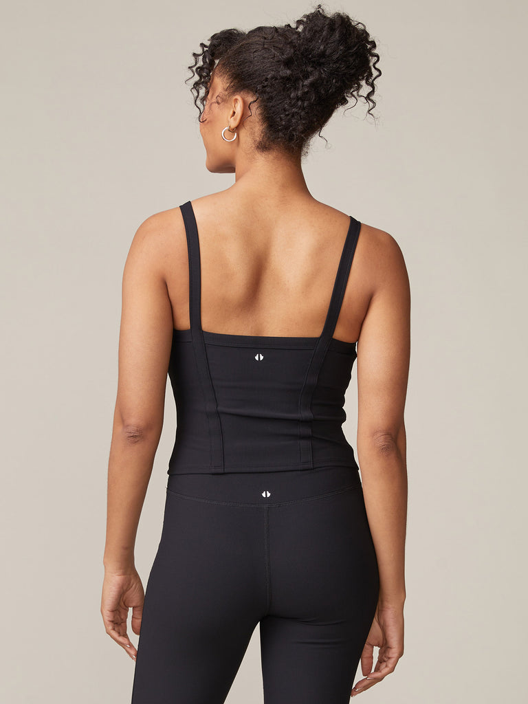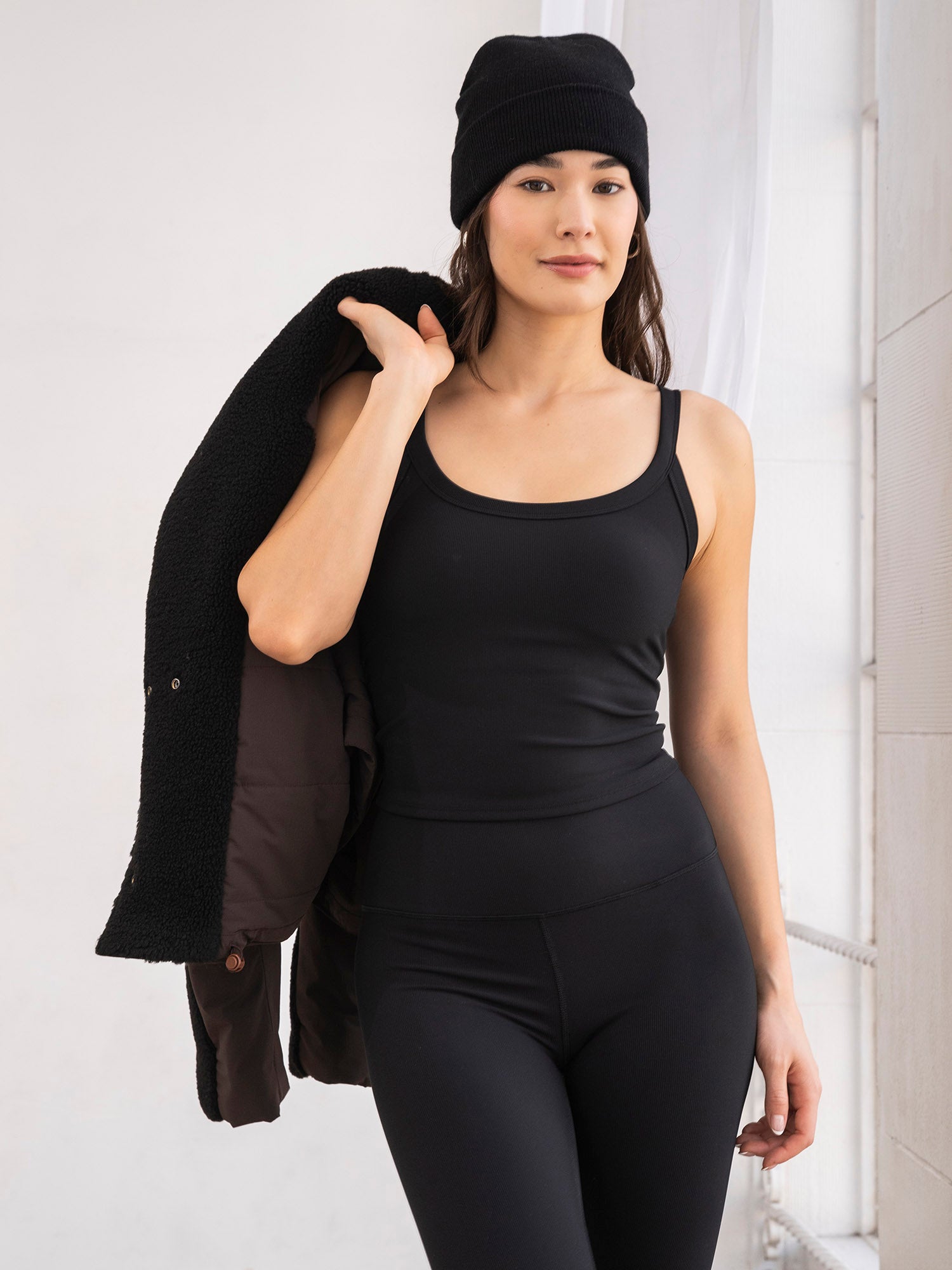 Our Rib Bra Tank is a u-neck tank with meet and greet length and removable cups for adjustable coverage. In our new Refine, rib compression quality. This tank is designed for performance and comfort in mind, revealing a sleek look with a secure, yet flexible fit. It's a perfect addition to your activewear wardrobe. This bra is a perfect match for the Rib 7/8 Legging and the Refine Mini Boot.