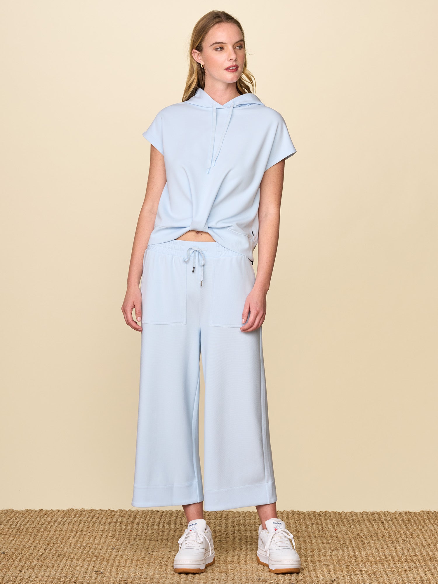 The Twist Front Hoodie is an ultra-soft and effortlessly stylish piece. With a flattering twist front detail and hood, it is perfect for lounging at home or heading out in comfort and confidence. Pairs with our Patch Pocket Gaucho Pant for a matching set.