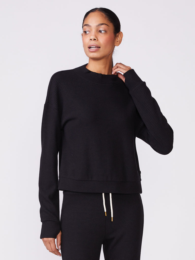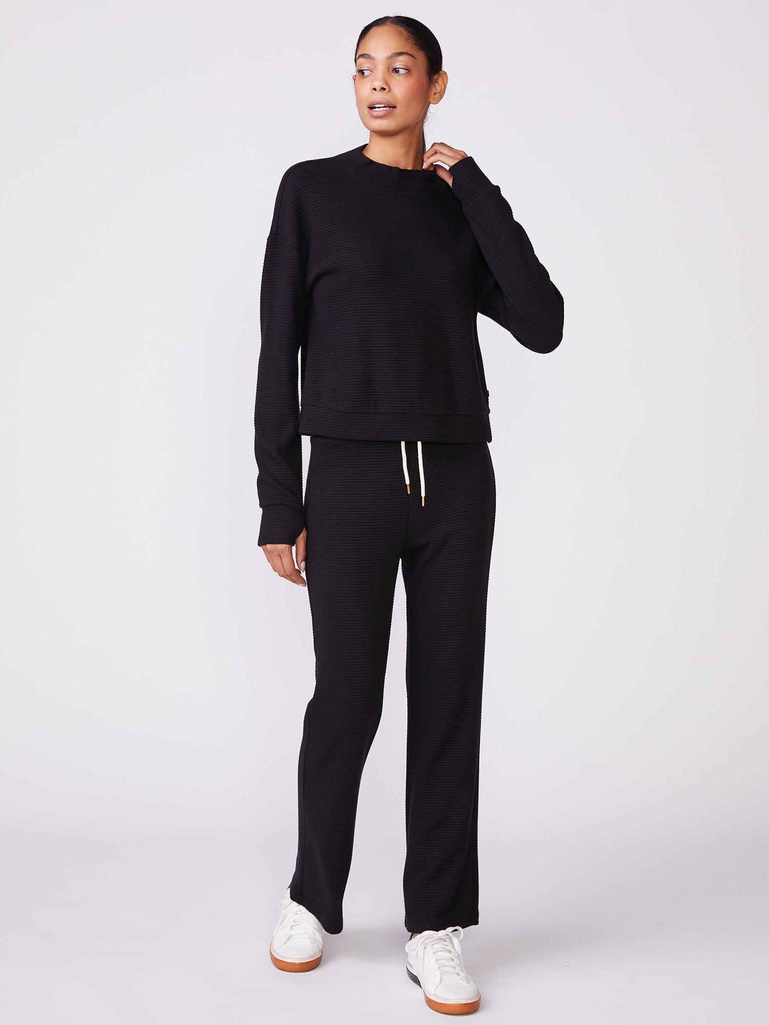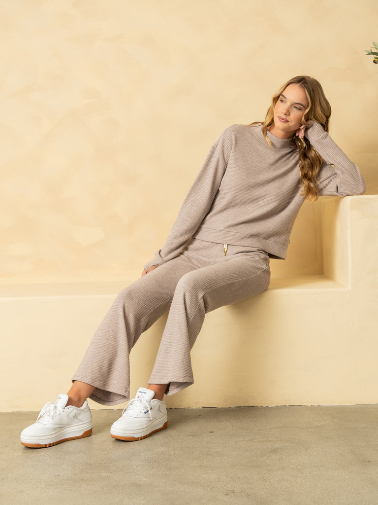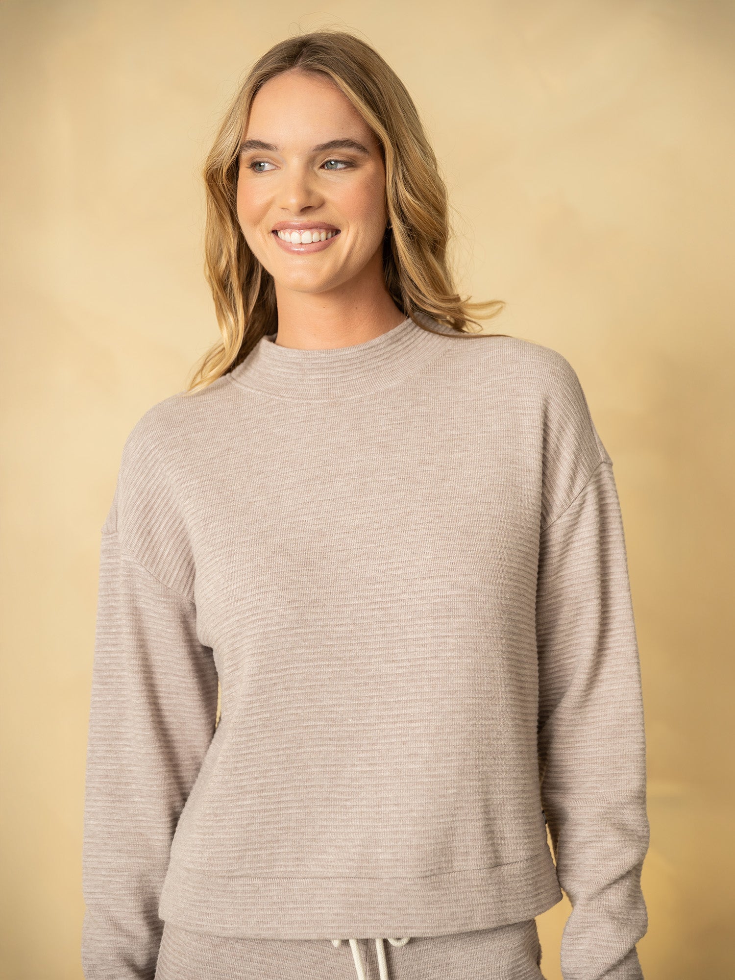 Our Knit Ottoman Pullover features a mock neck and long sleeves with thumb holes at the sleeve cuff. With a relaxed fit, this pullover pairs effortlessly with the Knit Ottoman Pant, creating a laid-back lounge look that's perfect for relaxing at home or stepping out in comfort.