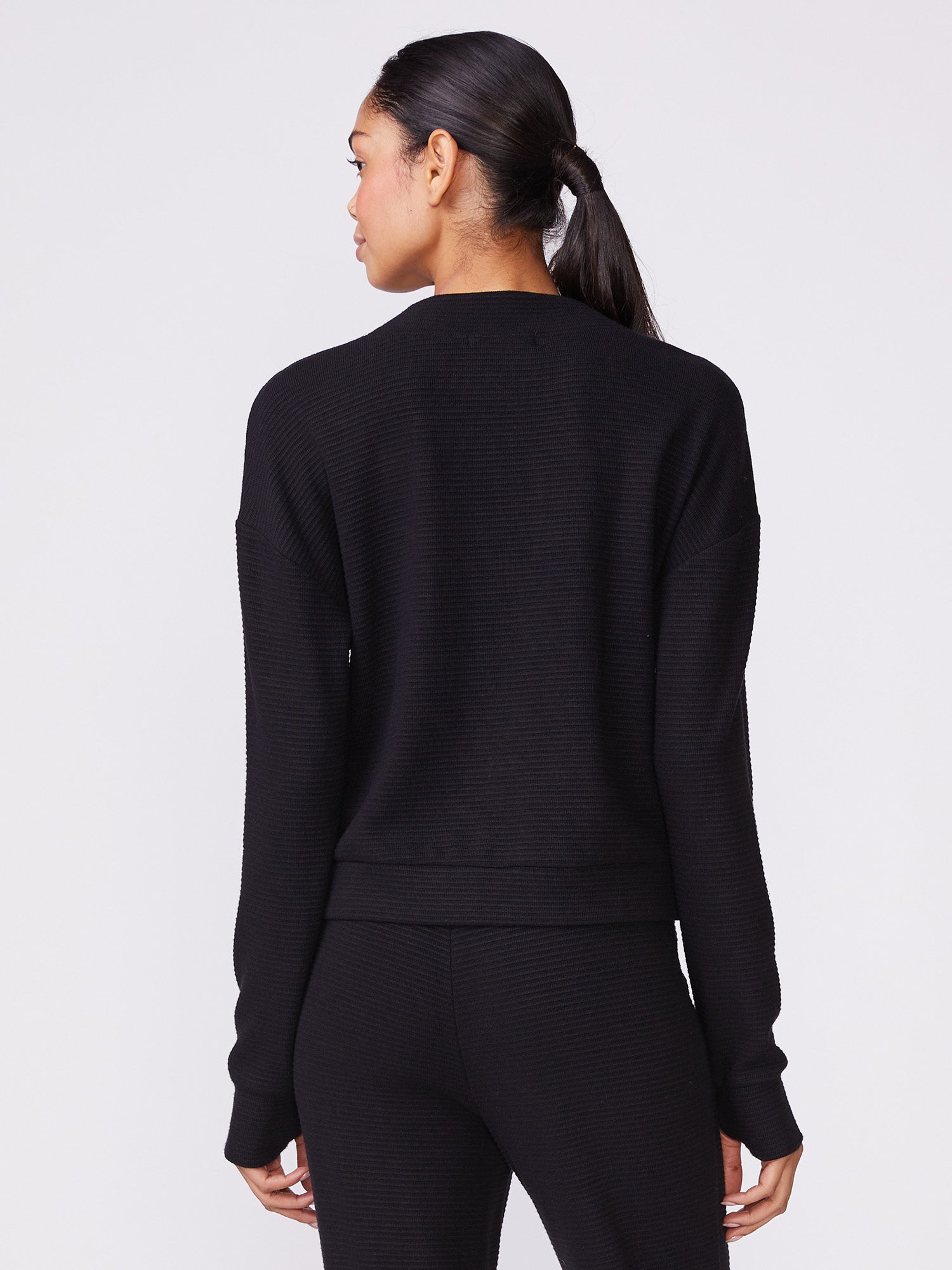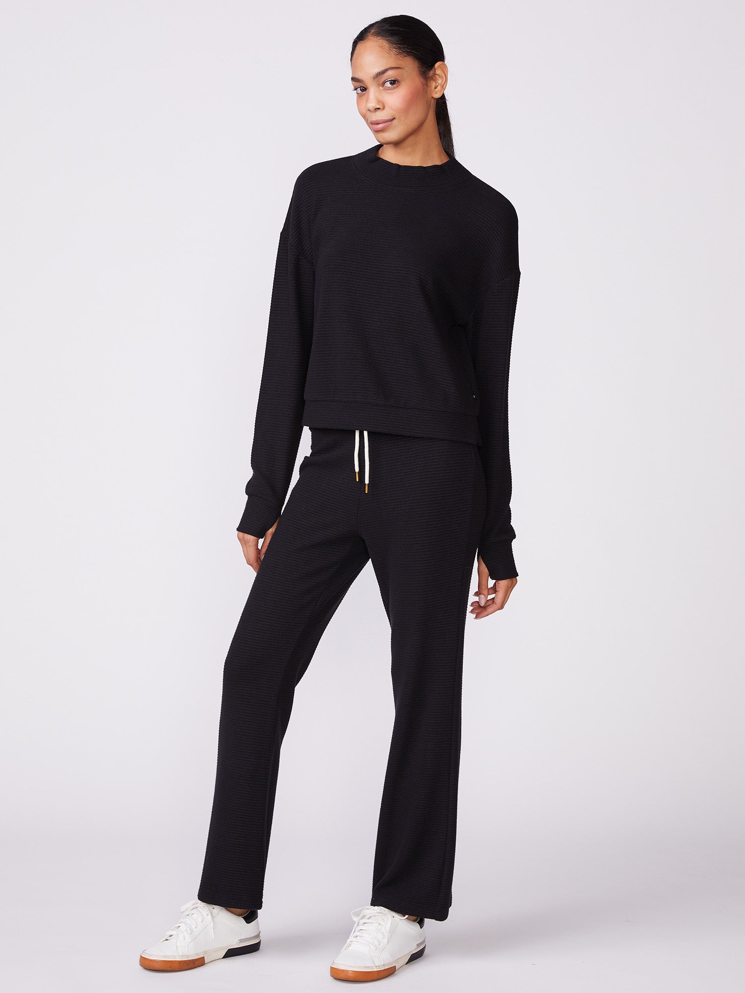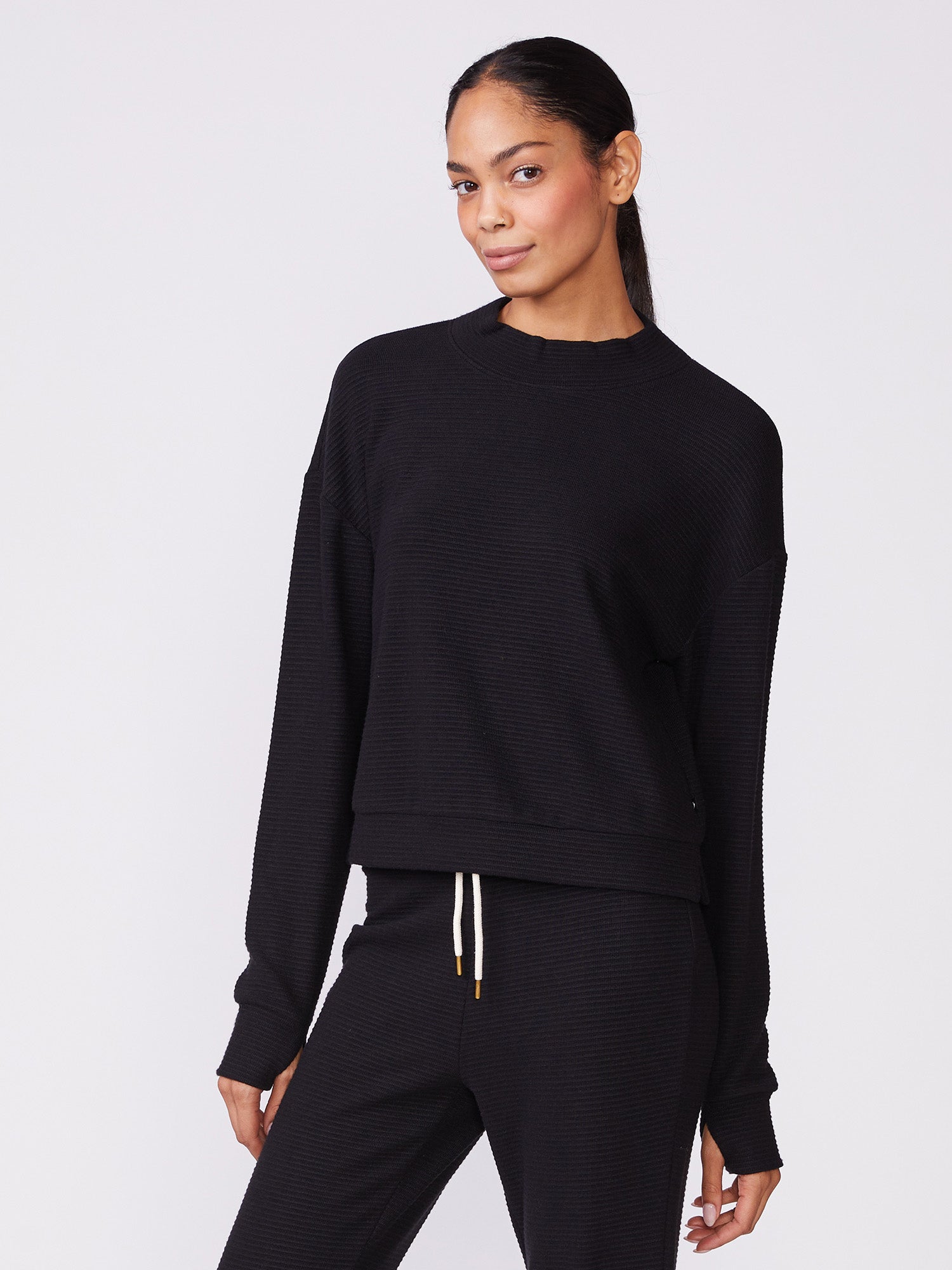 Our Knit Ottoman Pullover features a mock neck and long sleeves with thumb holes at the sleeve cuff. With a relaxed fit, this pullover pairs effortlessly with the Knit Ottoman Pant, creating a laid-back lounge look that's perfect for relaxing at home or stepping out in comfort.