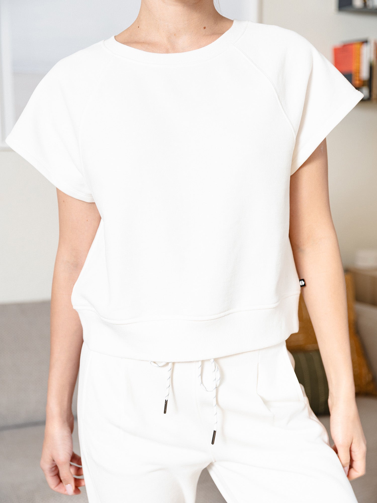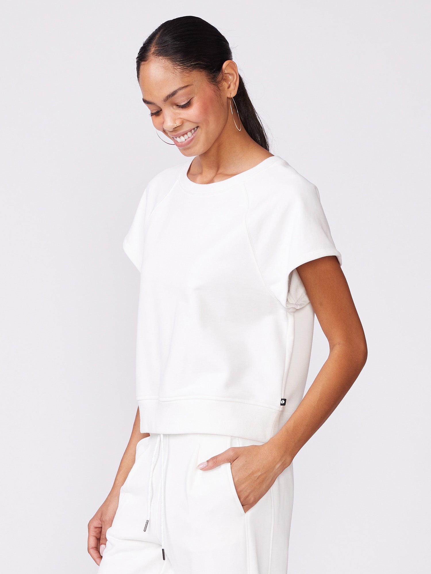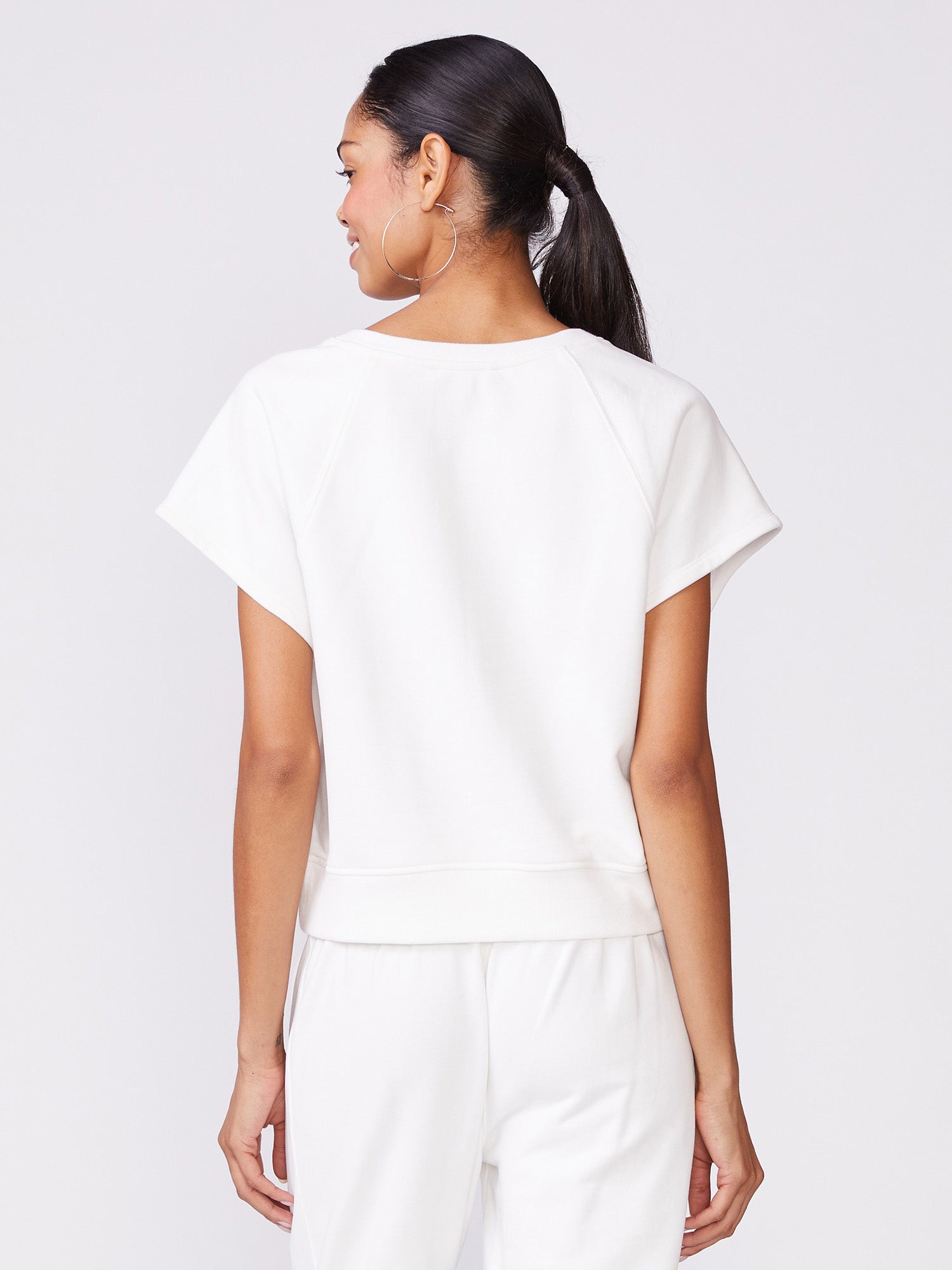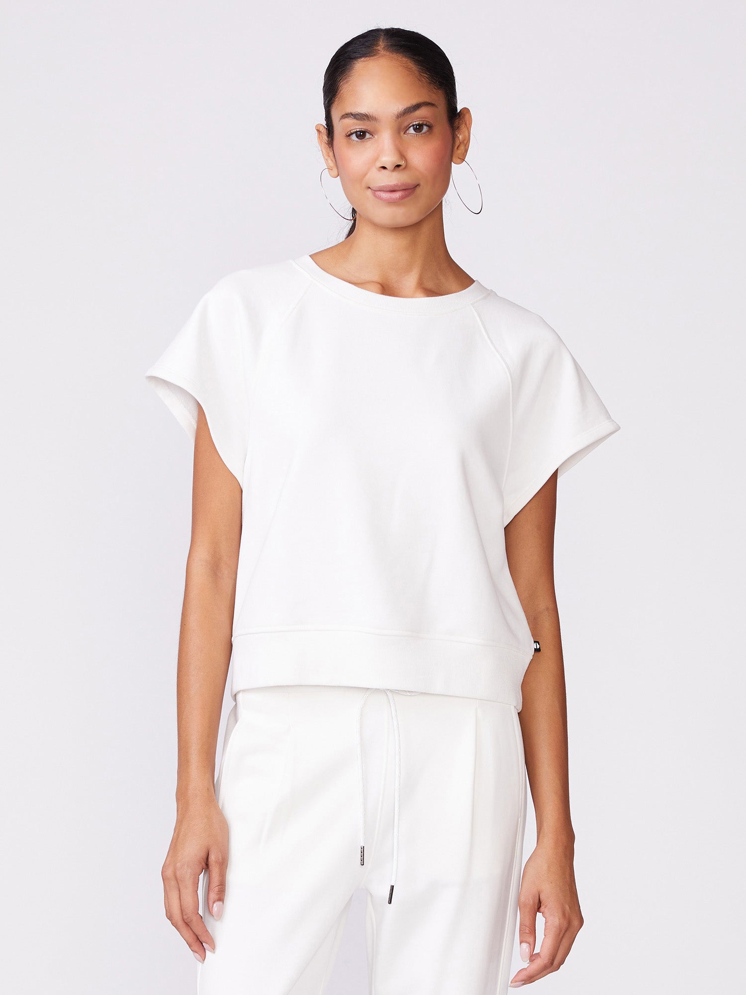 Stay comfortable in style with our Short Sleeve Raglan Sweatshirt, which is a matching set with our Pleat Front Jogger. Made in our super soft sueded French terry, it feels smooth against the skin while offering lightweight breathability to keep you cool. The relaxed, casual fit makes this piece perfect for layering or wearing on its own.